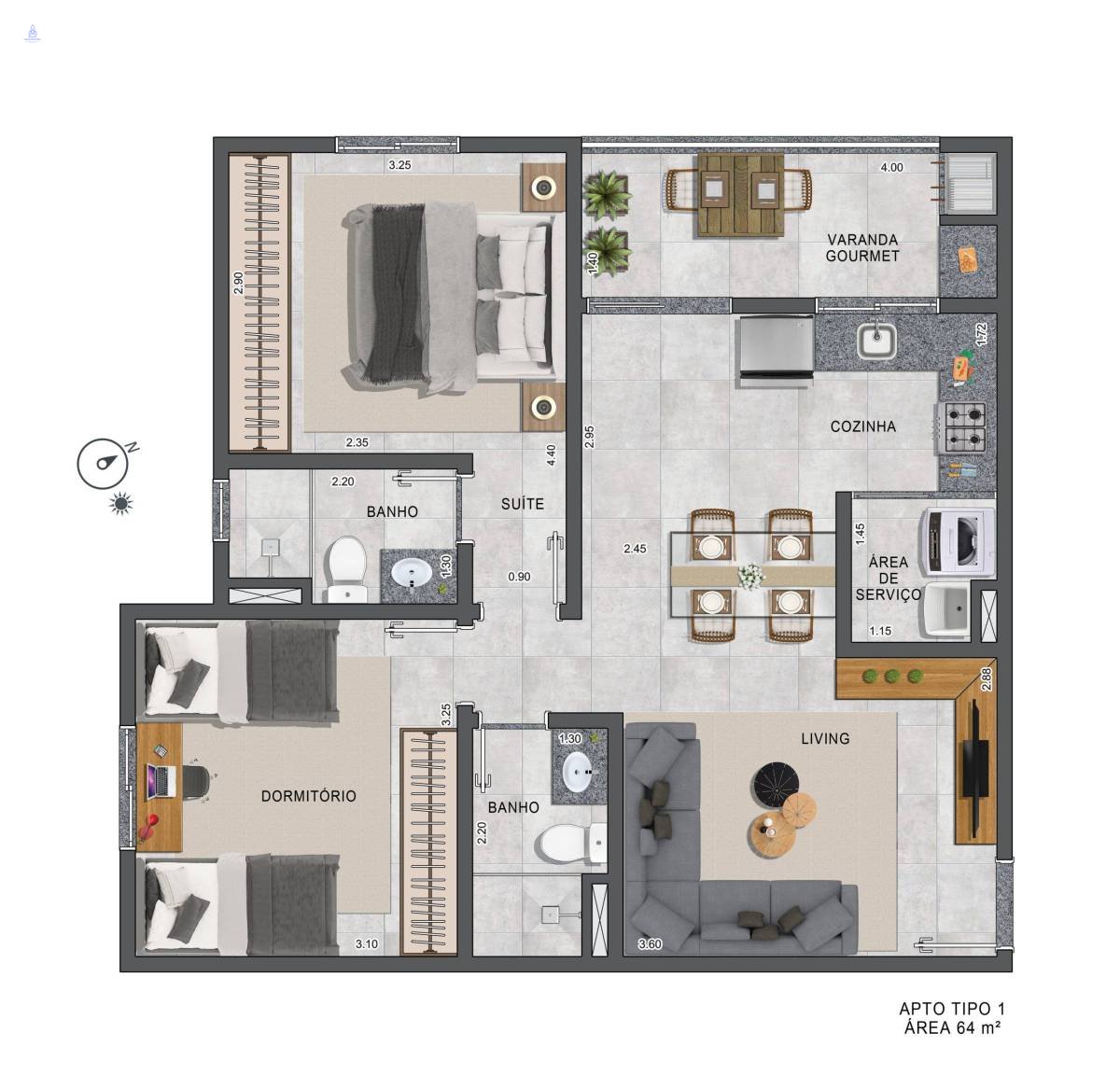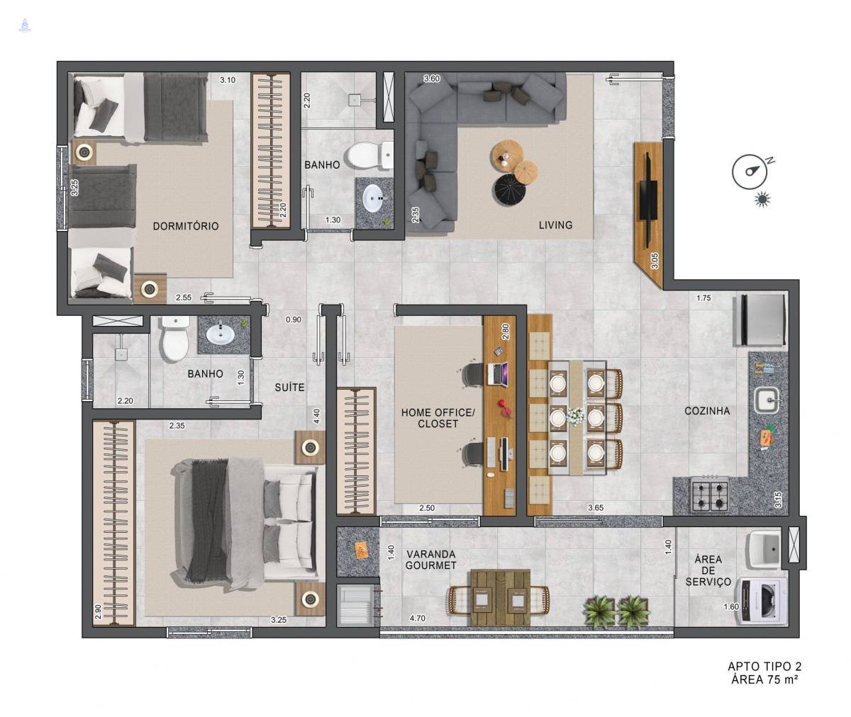 Apartamento à venda, no Altos Vila São José, em Taubaté, Vila São José, com 2 quartos, 64 a 75m²