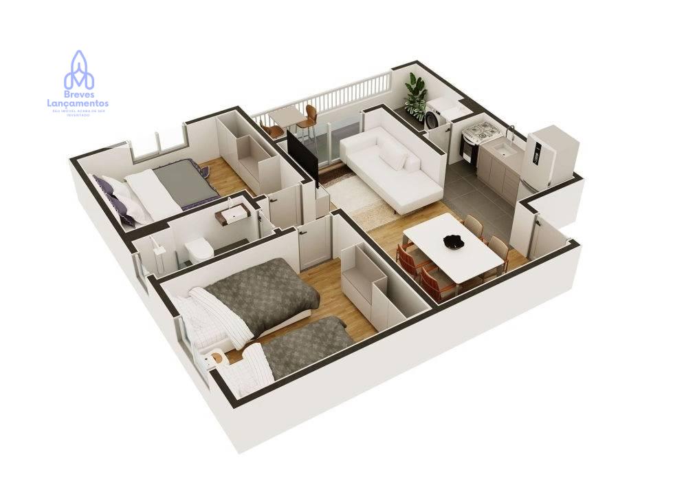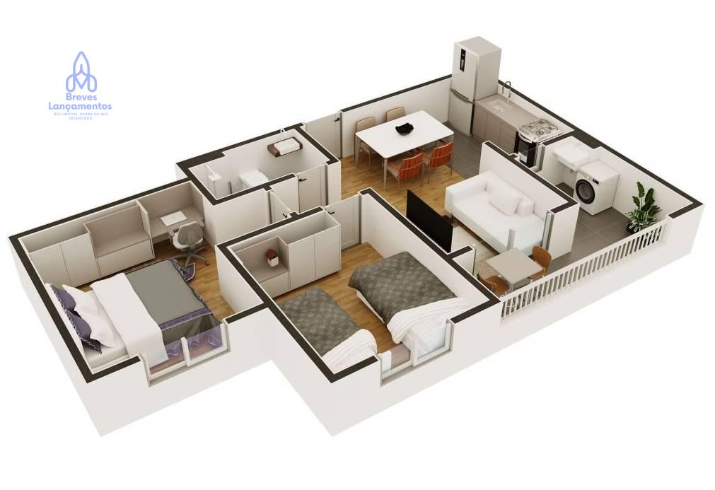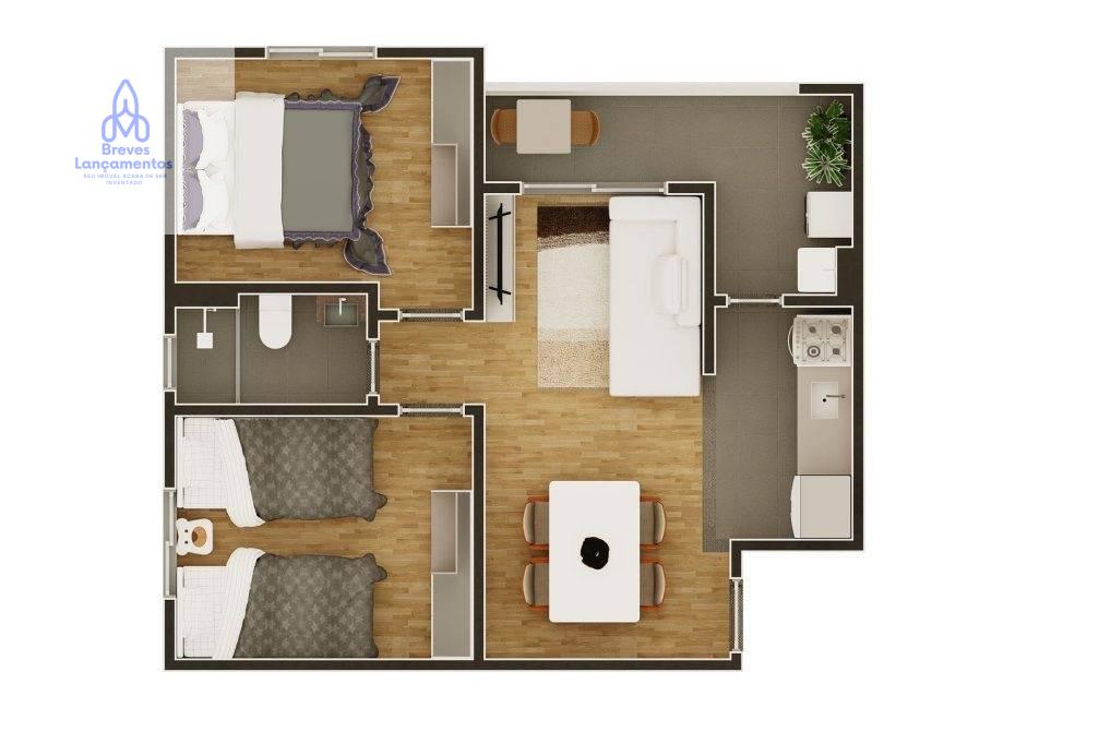 Apartamento com 2 Dorms ( 47a 49m²)  c/ Varanda e lazer completo